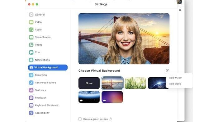 Fitur Virtual Background memungkinkan Anda untuk menampilkan gambar atau video sebagai latar belakang Anda selama rapat di Zoom. Fitur ini berfungsi dengan baik dengan layar hijau dan pencahayaan yang bagus, untuk memungkinkan Zoom mendeteksi perbedaan antara Anda dan latar belakang Anda. Anda juga dapat mengunggah gambar atau video Anda sendiri yang digunakan sebagai latar belakang virtual. Tidak ada batasan ukuran saat menambahkan latar belakang sesuka Anda sendiri, tetapi disarankan menggunakan gambar yang sesuai dengan rasio aspek kamera Anda sebelum mengunggahnya. Contoh: Jika kamera Anda diatur ke 16: 9, gambar 1280 piksel x 720 px atau 1920 piksel x 1080 piksel akan berfungsi dengan baik.