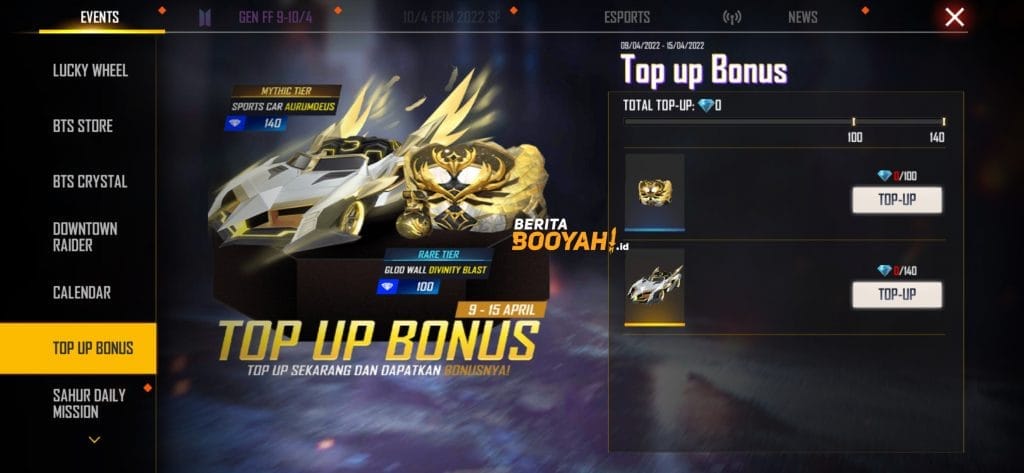 • Kunjungi Event>Bonus Top Up